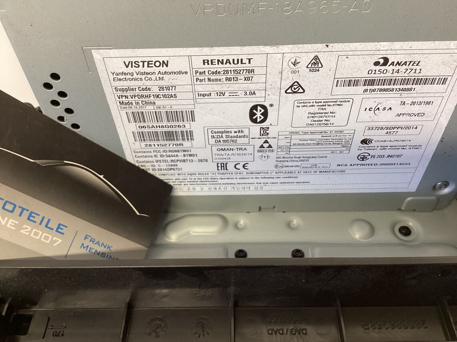 Sie bieten auf ein/e/en Renault Twingo Autoradio Audio System Drehknopf fehlt Bedienelement Schaltereinheit 281152770R 0150147711 10R041253