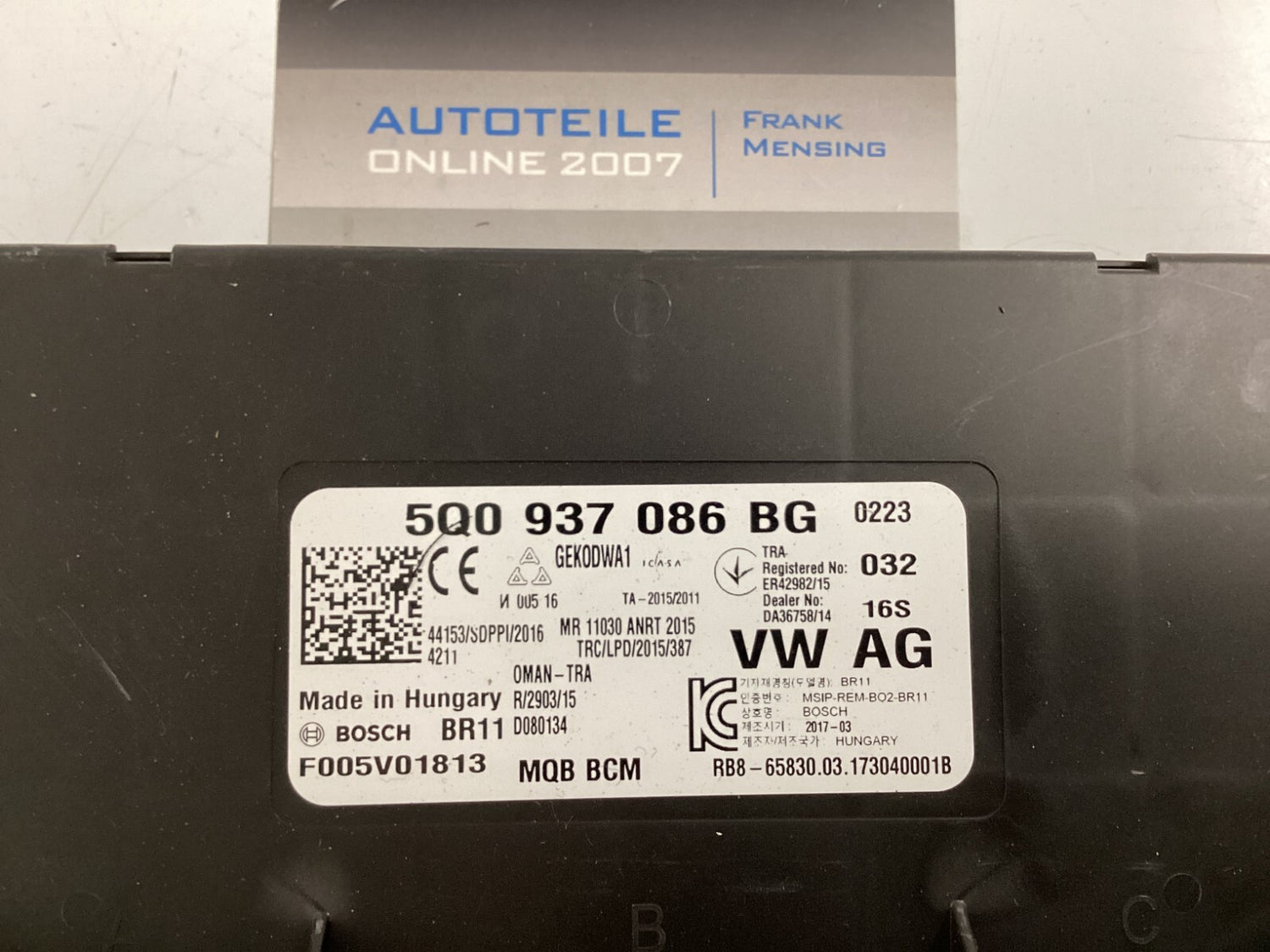 Herstellernummer: 5Q0937086 BG